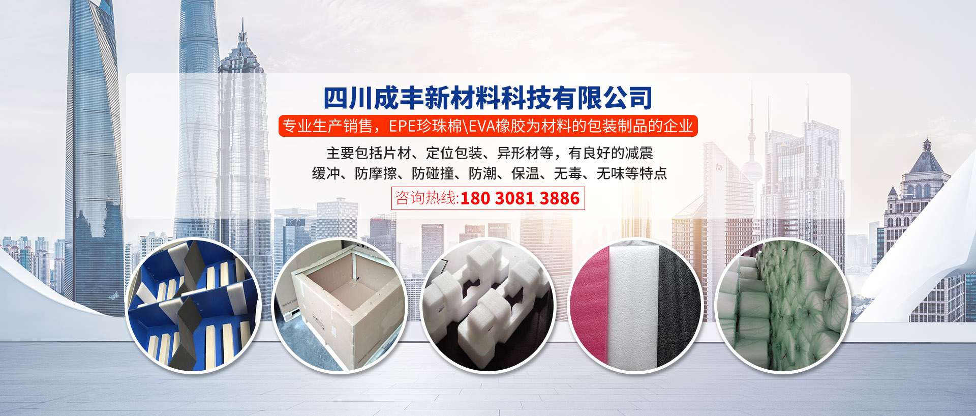 四川成豐新材料科技有限公司位于四川省德陽市旌陽區圖門江路30號,公司成立以來一直專業、誠信為客戶服務?,F在是一家專業生產銷售,EPE珍珠棉\EVA橡膠為材料的包裝制品的企業,包括片材、定位包裝、異形...